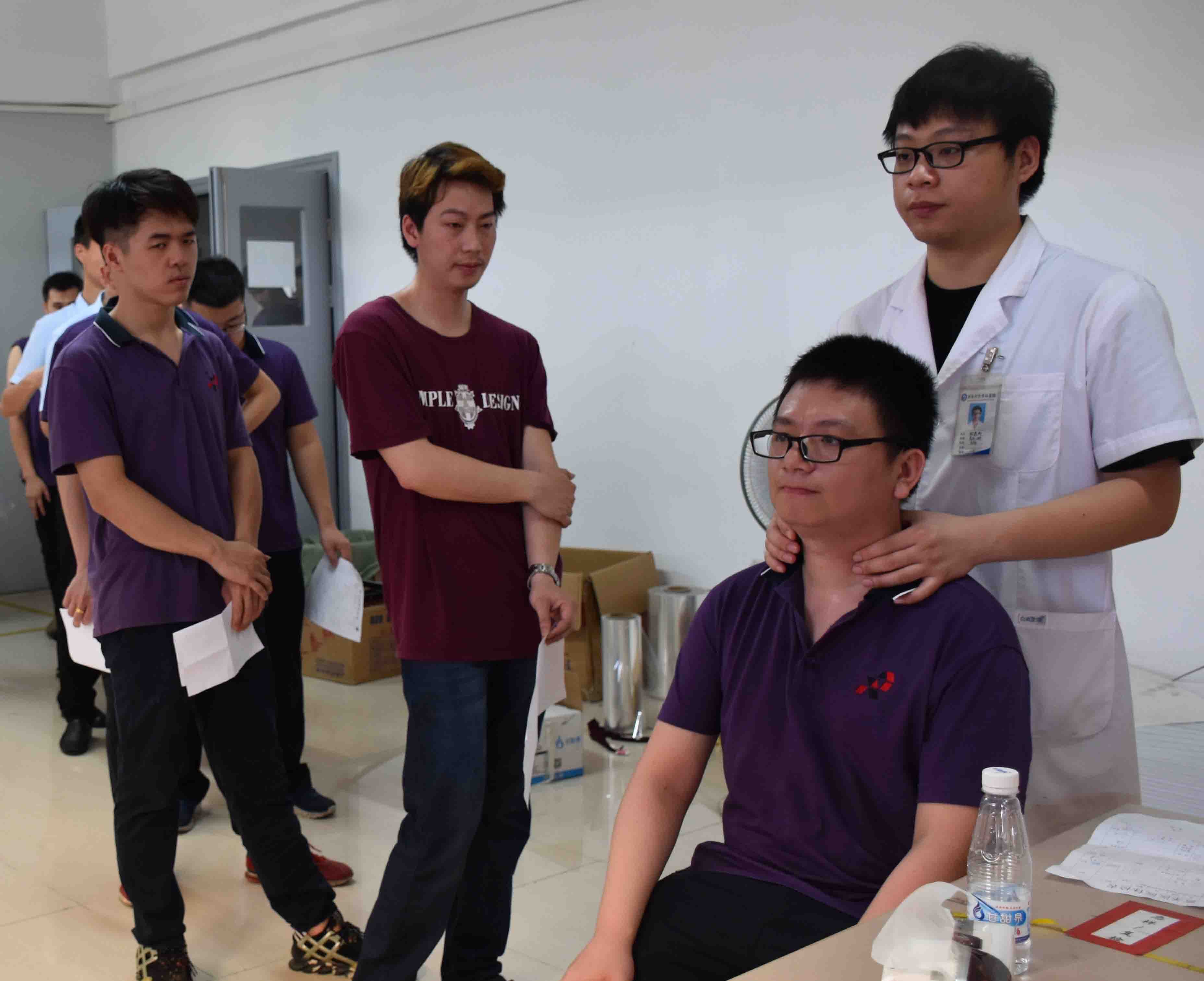 一年一度的職業健康體檢,我司聘請瞭(le)汕頭濠江新聖創傷骨科醫院(擁有職業健康檢查資質)的醫務人員,於(yú)5月18日上午8:30分在鑫瑞科技廠區準時開展體檢活動。